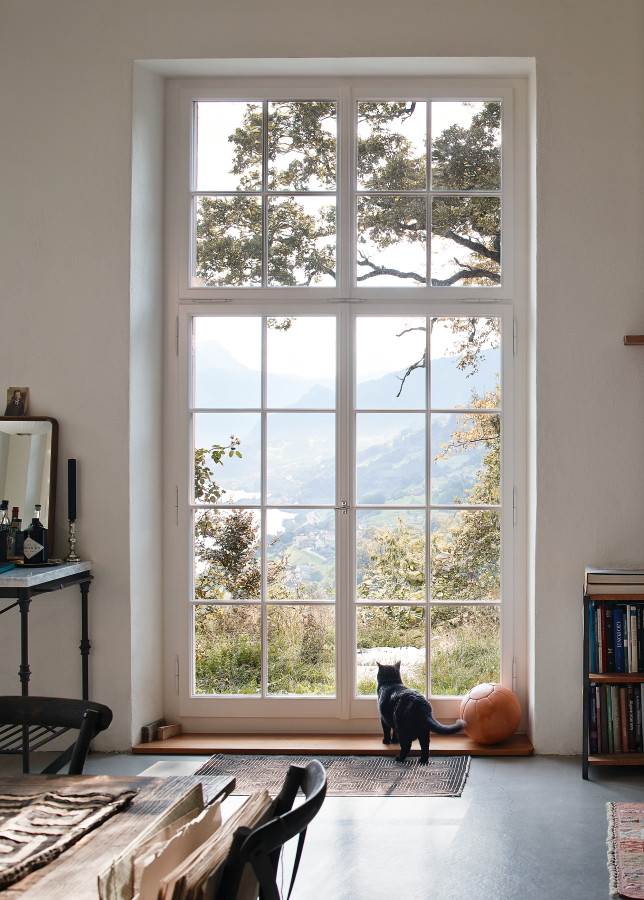 Fenster mit Weitblick. Hoch über dem Walensee wurde ein ehemaliges Künstlerhaus mit Atelier zu einem stilvollen Wohntraum umgebaut. Die Fenster stammen aus unserer Werkstatt. Sie sind passend zum Ort, der geprägt ist von Ruhe, Licht und Weite.